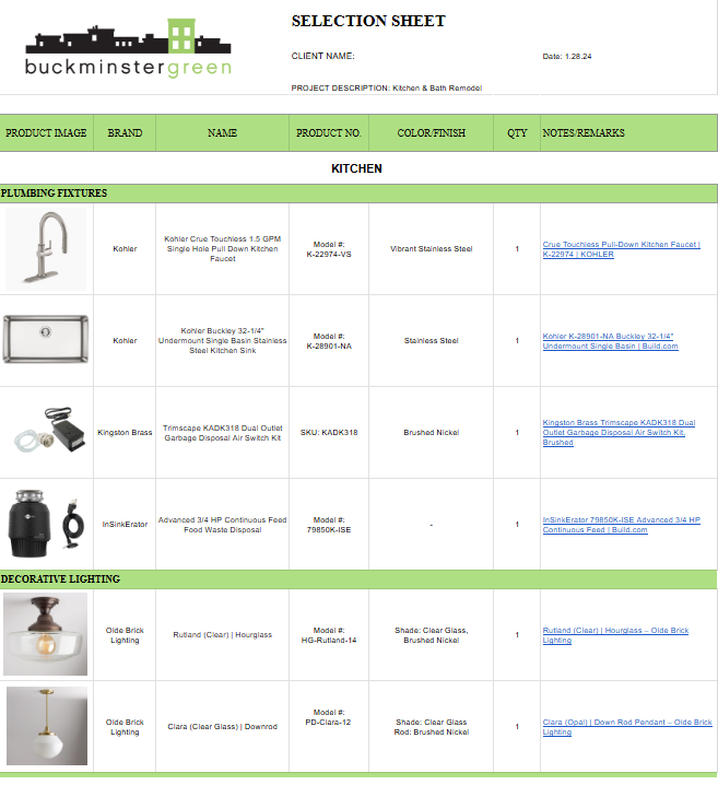 There are many decisions to make before your remodel starts. We help you visualize how different elements go together on digital design boards. Once you finalize the selections, our team keeps track of everything on selection sheets. We even specify the right bulbs for the light fixtures so the tone is consistent.