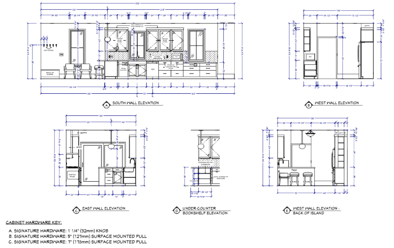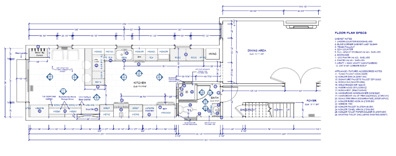 No matter the size or scope of the project, you can expect "existing" and "proposed" floorplans and elevations of your new space. There will be a mechanical plan. See examples of our designer's work below.